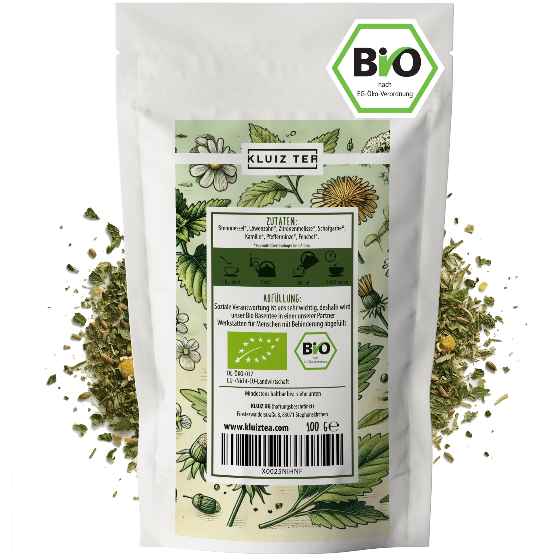 - Sorgfältige Kräuterauswahl - Mit Brennnessel, Löwenzahn, Schafgarbe und weitere basische Kräuter Tee für einen harmonischen Geschmack und wohltuende Wirkung.